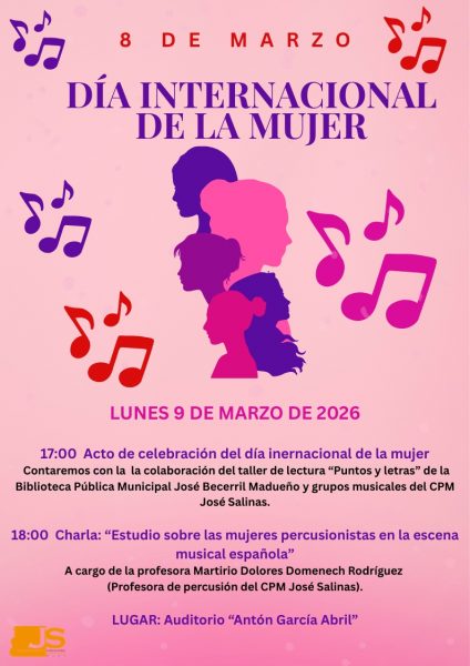 Con motivo de la celebración del Día Internacional de la Mujer, en el Conservatorio Profesional de Música “José Salinas” de Baza se celebrarán dos actos culturales el próximo lunes 9 de marzo de 2026 en el Auditorio “Antón García Abril”.